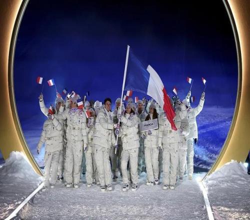法国代表团的开幕式服装由本土品牌Le Coq Sportif(俗称“法国公鸡”)打造。设计以白色为主色调,在帽子处巧妙将国旗蓝白红三色转化为浪漫的粉色系,柔化竞技运动的刚硬感。不过,比服装更引人注目的是法国代表团整体展现出的那种松弛感。