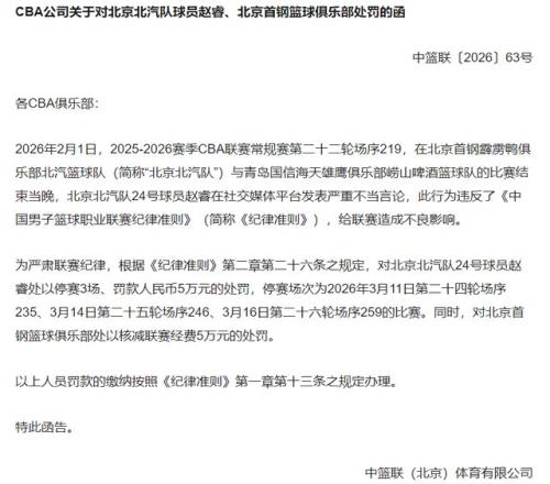 该来的总会来,不久前,在北京男篮输给青岛队比赛之后,赵睿在社交媒体与球迷互动时发表涉及地域歧视的言论,引发舆论的广泛聚焦和部分新疆球迷的强烈不满。北京时间2月11日晚上,中国篮协公布了对赵睿的罚单:停赛三场罚款五万,北京首钢也因此被罚款五万。如何评价篮协的这一罚单呢?四个字:避重就轻。