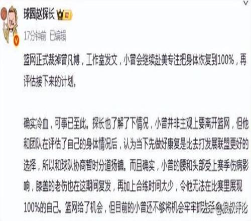 北京时间10月15日,根据篮网队官宣,将会裁掉中国球员曾凡博引发外界的热议。