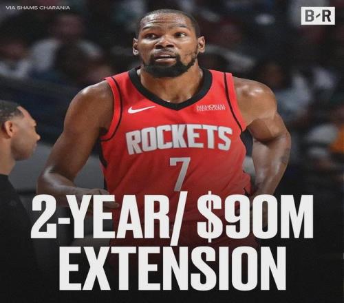 火箭官方宣布:正式与杜兰特达成提前续约协议。据Shams的报道,杜兰特放弃两年1.2亿美元,选择与火箭签下两年9000万美元,从而降薪3000万美元,目的是为了球队保持薪资空间灵活性,便于双方未来长期合作。