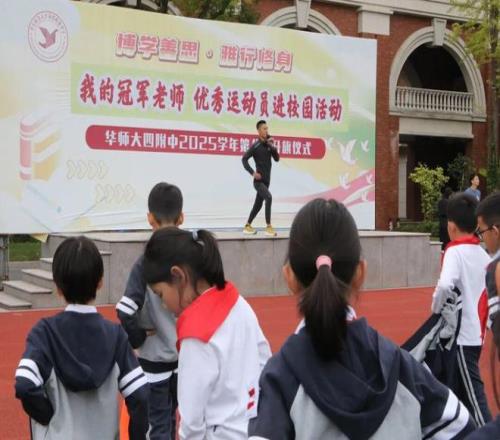 2025年《我的冠军老师—优秀运动员进校园》活动第11站,“马拉松进校园”如约而至,国内首位同时获得世界田联与美国田协最高级教练认证的陈金洋老师,走进华东师范大学第四附属中学,为同学们带来一场关于奔跑、坚持与成长的深刻启迪。