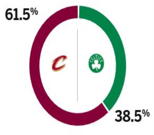 赛前,美媒ESPN预测本场比赛,骑士胜率为61.5%,凯尔特人胜率为38.5%。
