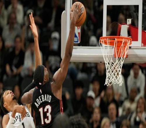 威金斯篮下得手,瓦塞尔回敬三分球。卡斯尔抢断,瓦塞尔2罚1中,凯尔登约翰逊罚中2球。史密斯、阿德巴约相继冲击内线得分,丰泰基奥3罚全中,阿德巴约勾手得分,热火打出了9比0的攻势。哈珀外线取分,麦克劳林抢断,凯尔登约翰逊低位打进,文班亚马2罚全中,麦克劳林轰进远投,马刺回敬10比0的小高潮稳住局面。哈克斯篮下得手,首节打完,热火以31比33落后,阿德巴约单节砍下10分。
