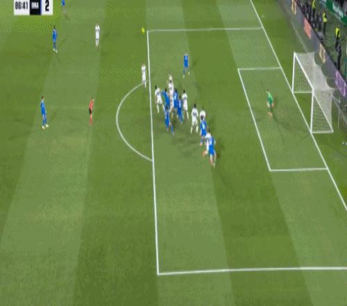在扑救皇马第二个进球时,与维尼修斯撞到一起