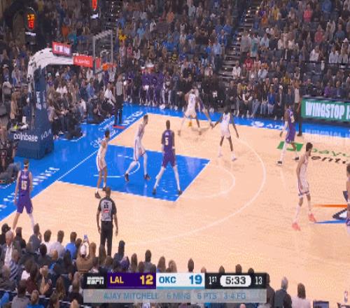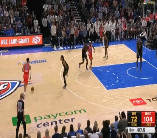 他学会了一些卡鲁索爱玩的防守技巧,也能在和SGA一起上场的时候像杰伦-威廉姆斯一样担任二号持球手,甚至在一些比分胶着的回合里,SGA都会放心地把球交给米切尔来完成进攻。