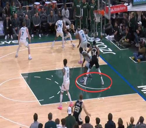 问题就在于漏吹这次违例后,雄鹿就在这个回合完成一次重要的进攻,库兹马命中关键三分球。如果裁判准确吹出字母哥进攻3秒违例,黄蜂不会丢掉这3分,并将掌控球权。考虑到当时比赛时间只剩不到24秒,且黄蜂是领先的一方,比赛结果很可能就会被改写。
