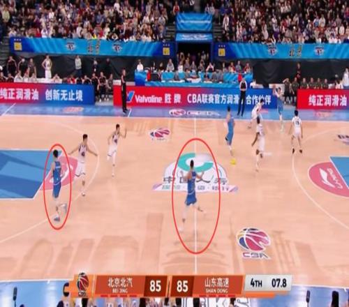 来看看北京的最后一攻是怎么发的?谢智杰罚进后,周琦快发底线球,第一时间找了陈盈骏,翟晓川、曾凡博也第一时间快步飞奔到前场准备接应,周琦开出球后也迅速跟进,只有杰曼还留在原地等接球,其他人都飞奔到了前场,杰曼还在后场伸手要球干着急,显然杰曼和其他4名队员完全不在一个频道上。