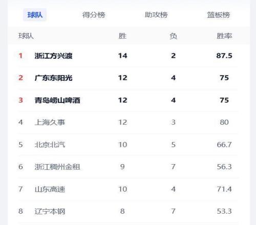 浙江广厦队是上赛季CBA的总冠军,休赛期他们还进行了针对性的补强,目前广厦队的战绩为14胜2负,排名常规赛第一,断层领先其他的球队。四川队则是另一个极端,本赛季至今四川队未尝一胜,16连败后他们的战绩垫底,排名也只能是倒数第一;排在四川队前边的江苏队是3胜13负,天津队是4胜11负,上个赛季和四川队一样垫底的宁波队本赛季战绩不错,目前他们已经取得了8胜7负的战绩,本赛季有望队史首次进入季后赛。