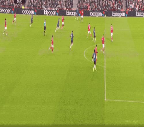第80分钟,替补登场的热苏斯扰乱森林防线,埃纳禁区内手球,VAR介入,泰勒认定没有点球。