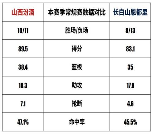 山西汾酒与长白山恩都里历史上一共交手42次,山西汾酒22胜20负。上赛季两队交手2次,山西汾酒1胜1负。