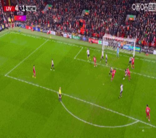 第90+3分钟,波普扑球脱手,科纳特补射破门,利物浦4-1纽卡