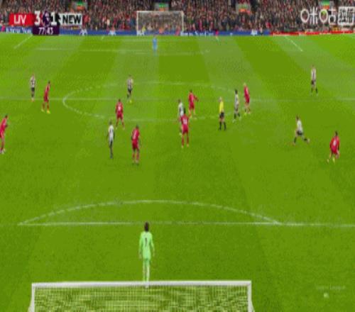第36分钟,戈登禁区右路低射远角破门,纽卡1-0利物浦