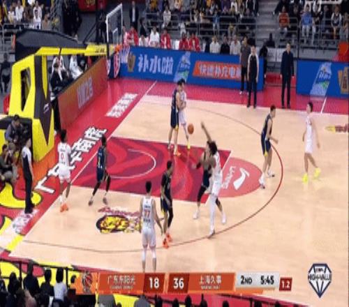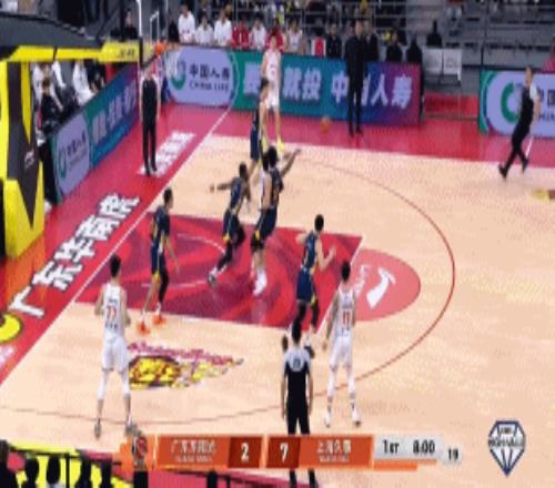 后半节双方二阵容比拼,王哲林中投+空切暴扣+吃饼连得6分,萨姆纳奎因打出空接连线后广东连续出现失误,上海一口气领先来到21-9,杜锋终于喊出暂停。