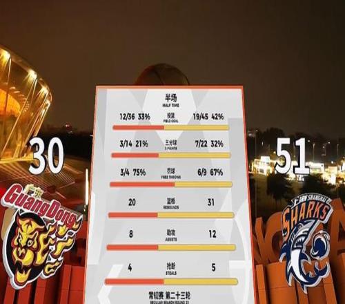 第一节广东队打的有点崩,速度提得比往常更快,鸡蛋碰石头和上海大打对轰,流畅的快攻其实打不出几个,还出现了很多非受迫性失误,萨林杰表现还行,虽然出现了一次运球违例失误,但能把节奏降下来,避免上海再打出跑轰,首节广东三分7中1,篮板输了4个,16-28落后。