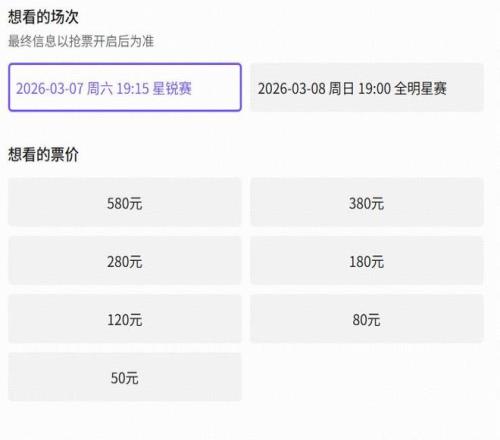 北京时间2月3日,CBA官方公布了2026CBA全明星的开票时间和售价。
