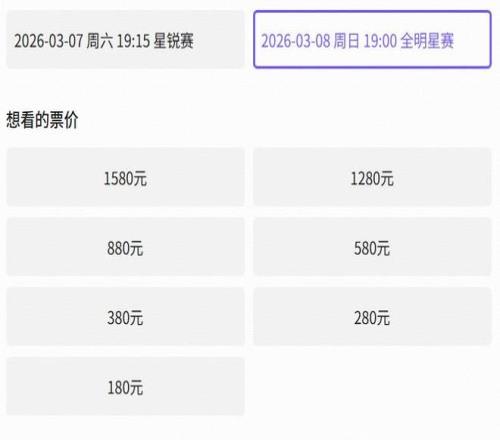 据票务网站显示,全明星首日的票价最低50元,最高580元。次日的票价最低180元,最高1580元。